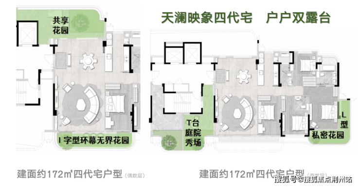 它通过奇偶错层和L型私密花园,创新打造了空中院墅,将立体空间折叠进平面空间,使得户户均有双露台、高赠送。