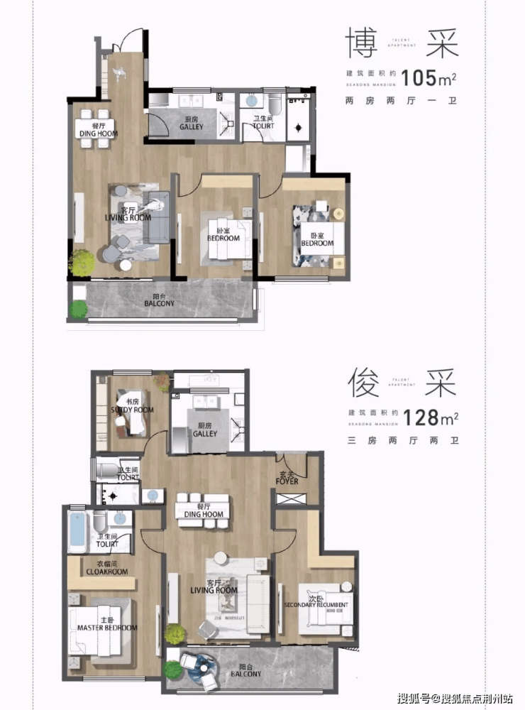 户型聚焦建面约105㎡与128㎡两大主力面积段,配置大金中央空调、菲斯曼地暖、爱迪士新风系统等国际一线品牌,实现真正“拎包即住”。