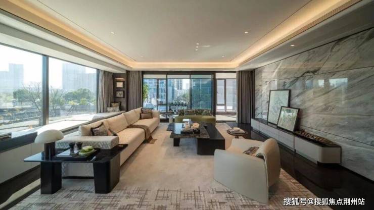 ③窗墙比高、落地窗采光好:不论是客厅还是每一个卧室,臻元府大面的落地玻璃窗,能够极大地提升室内的采光与通风,也能消融室内外的边界,将园林风景无界引入室内。