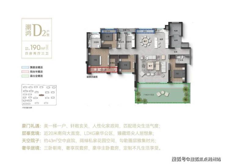 更让人期待的是建筑面积约190㎡(中露台)户型,近20米南向巨幕面宽、LDKG(客厅、餐厅、厨房、花园)豪华公区、约43㎡空中花园,每一寸空间都在讲述高奢生活故事。