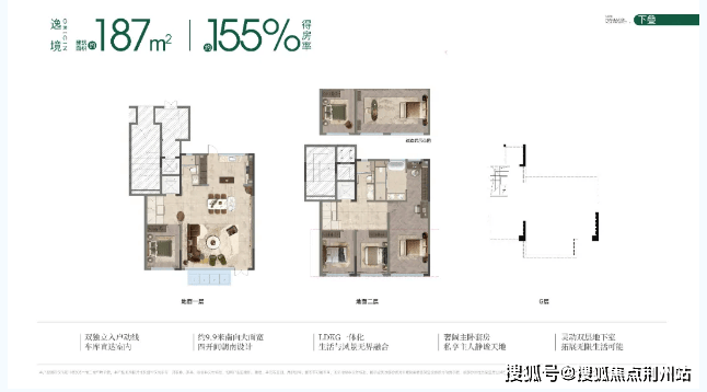 •二进立体庭院:约2000m²下沉式庭院及会所,健身房、瑜伽室、恒温泳池、室内高尔夫、私宴厅等沉浸式体验空间