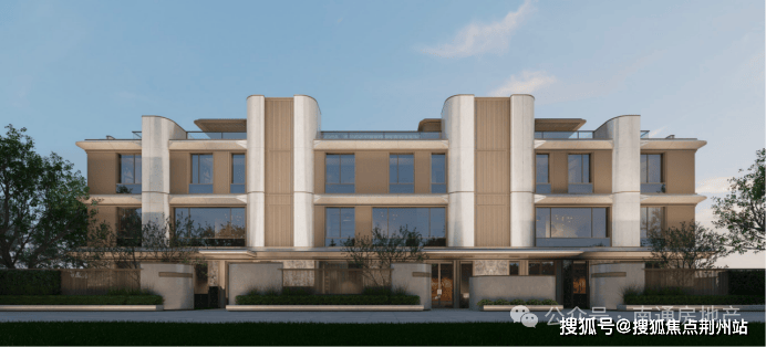 ·【千帆归港温润立面美学】通过错落有致的石材面与曲线的组合,在刚与柔的对话中构筑起兼具雕塑感与灵动感的立面形象,对节点的细腻刻画,体现一种温润典雅的立面美学;