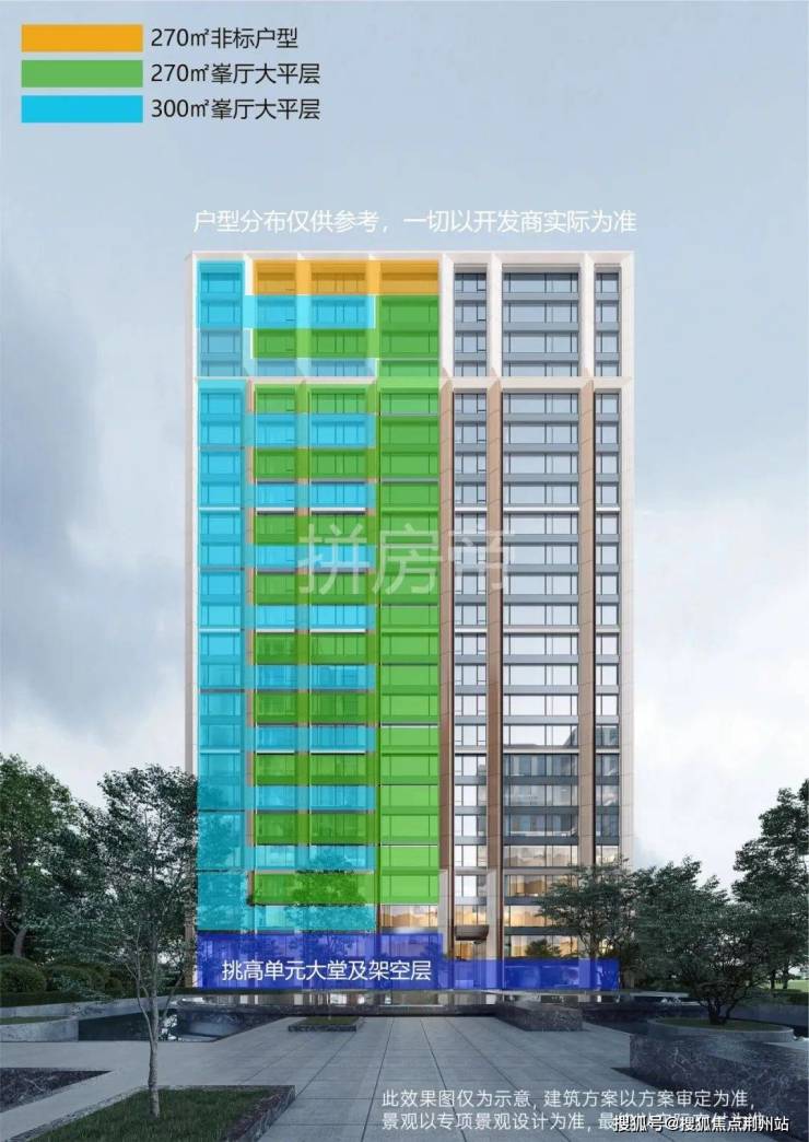 中海非常有创意的把两种挑空户型错位叠加,奇数层为300㎡的边厅挑空,偶数层为270㎡的南厅挑空,像俄罗斯方块一样。