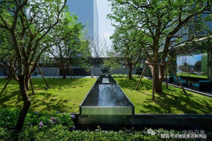 走近岚湾,约 50 米阔绰大门首先映入眼帘,以现代主义的简约线条勾勒出庄重与优雅:石材与金属的碰撞彰显质感,对称式的布局传递礼序,门前的水景与绿植相映成趣,让每一次归家都充满仪式感。而三大主题景观花园 —— 浮岛花园、翡翠花园、沐光花园,则构成了社区的 “自然灵魂”:浮岛花园以水系串联起错落的景观平台,仿佛 “漂浮” 在绿意中的岛屿;翡翠花园以大面积草坪与四季花卉为主,是业主野餐、遛娃的绝佳去处;沐光花园则利用地形高差,打造出层次丰富的台地景观,阳光洒下时,光影流转间尽是生机。