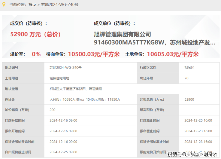 规划确定!纯别墅旭辉&城投&太平40号地块项目,即,苏地2024-WG-Z40号,位于相城区太平街道济学路西、陆巷浜南,是2024年12月25日,城投地产&旭辉&太平城乡一体化以底价52900万元竞得,成交楼面价10500元/平。