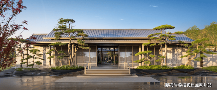 门前亭立的水景与迎客松,与门后中岛的「一池三山」互相映照,还没有走进大门,重檐、山石、流水、劲松……早已在你眼前组成一幅山水画卷。