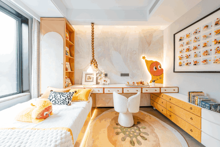 没有冗余的空间浪费,每一寸面积都物尽其用:全南向四开间设计,约13.4米面宽,阳光能从清晨晒到傍晚;约9.9米贯通式阳台,连接客厅与卧室,既能晾晒衣物,也能当作休闲观景台;超实得率又高,堪比160㎡大平层的奢阔尺度,一家三代同堂,也能从容居住、互不干扰。