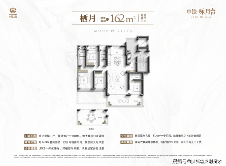 建面约162-164㎡四代洋房,实现“平层的便捷,别墅的诗意”。以创新奇偶错层设计,打破传统洋房的空间局限,户户私享全南向约21-22㎡空中花园,真正实现“把庭院搬至房子里”。