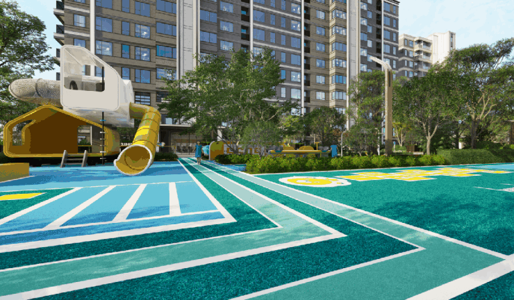景观打造上,项目依托台地高差,构筑约380㎡下沉式庭院、约4900㎡中央景观与约2400㎡滨水公园三大立体景观,将健身空间、私属会客厅、儿童乐园、休闲跑道等全龄场景融入了。