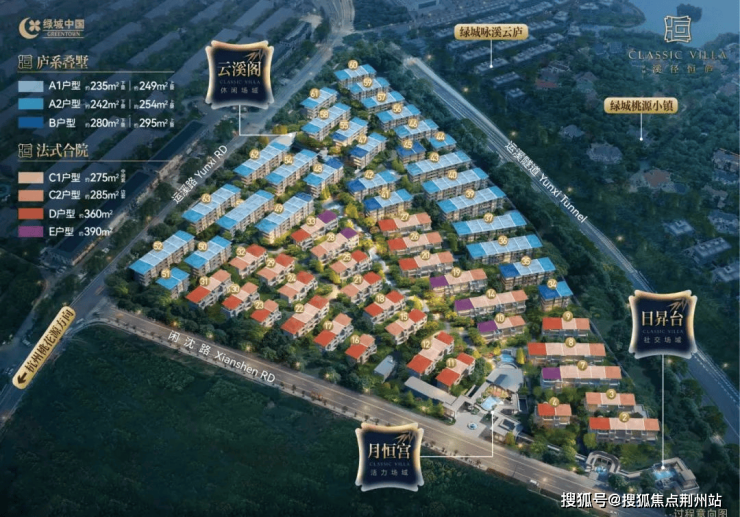 【面 积 段】法式风格:建面约285-400㎡ -庐系叠排:建面约235-300㎡