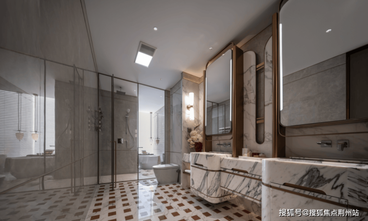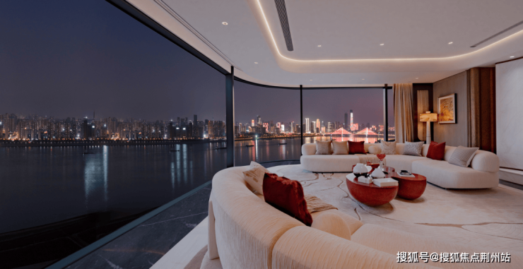 ②约95平一体化巨厅:这是推窗见江的最佳载体之一,巨幕全景落地窗相当霸气。如此奢阔的空间堪比一套三房两厅的小户型,这里包含了阔气餐厅、中西双厨、休闲品茶以及社交主场,商务待客、以江会友,视觉盛宴与商务牌面全都有了。