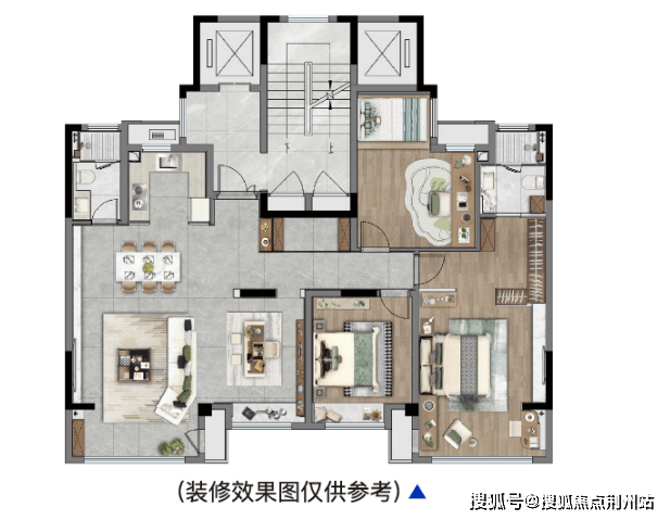 建面约142㎡的中叠户型,正是理想栖居范本。空间规划清晰有序,动静分区如天然屏障,让每个生活场景都能自洽绽放。