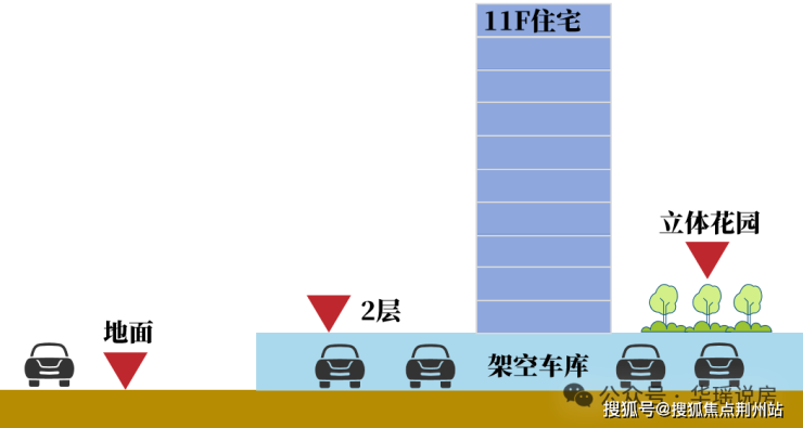 简单的理解就是,进入小区后,你以为你在一层,其实是在二层,之前的一层架空层留给了车库。