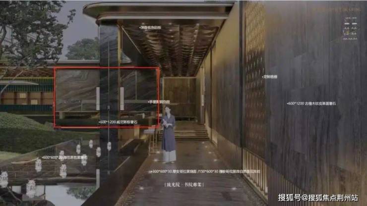 再比如,为了做好中轴景观区的景墙,项目实地考察了很多一线高端豪宅,先用威尼斯棕奢石选样,后来发现威尼斯棕奢石效果不达预期,最后升级为流沙棕奢石