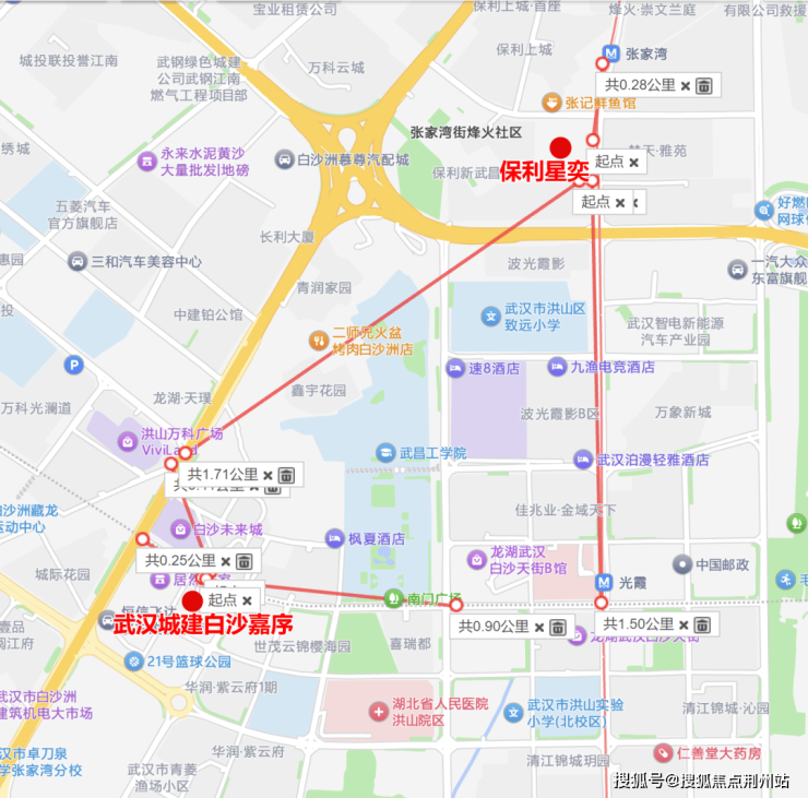 首先从地理位置来看,两个小区直线距离约2公里,保利星奕属于新二环内,绝对位置更靠近武昌核心。