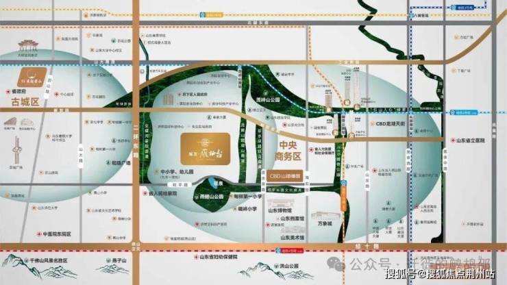 项目属CBD西片区首个住宅项目,衔接老城(泉城路商圈)与新城(CBD国际配套),向西3公里达泉城路(恒隆、宽厚里),向东1.5公里达万象城、省博物馆。