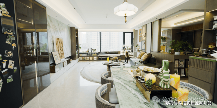 如果没有看样板间门口的水牌,就这样的客厅尺度,说是建面约120平户型,也不会有人质疑。