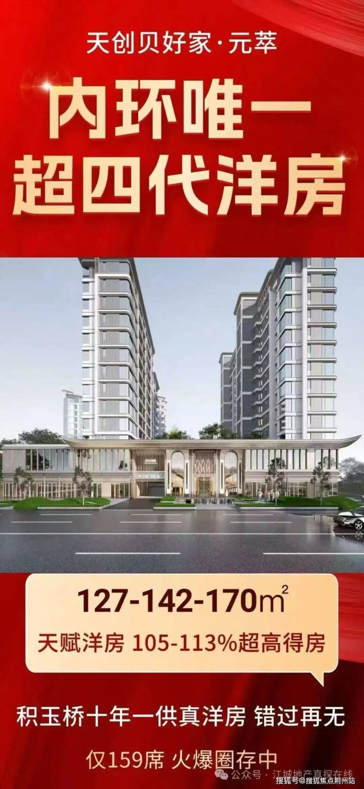 内环唯一墅质洋房,超四代!得房高达110%,武昌芯,古城之上,127-142-170平,预计毛坯3w,仅159席,积玉桥十年一供真洋房,全靠抢!