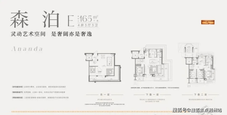 叠墅产品:建面约160-170㎡,分为上叠、中叠、下叠,均享湖景资源,部分户型附赠地下室、花园或露台。