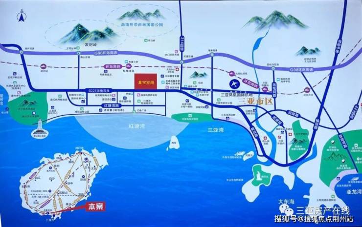 高速公路:G98高速公路(距离天涯互通入口约3.9公里)畅通全岛各市县