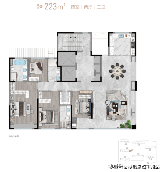 项目总建面约10万㎡,由8栋15层小高层错落布局,低密舒朗、尺度从容。户型涵盖约155-300㎡多元面积段,包括161㎡、175㎡、221㎡及235㎡等主力户型,全面覆盖不同家庭结构的品质改善需求。