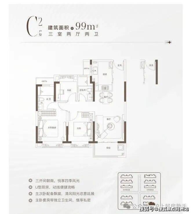 建面:99平,总价238-303万(中间套/边套)