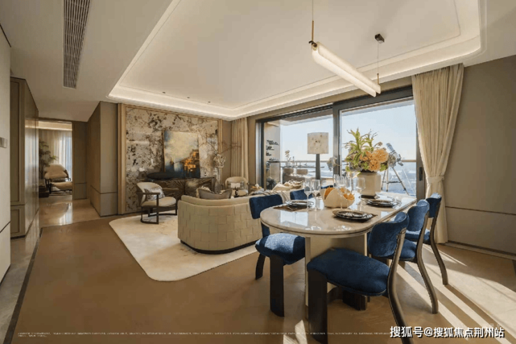 客餐厅与阳台等宽贯通,最大化延伸观景视野,会客宴请时,窗外盛景便是天然的格调装饰;