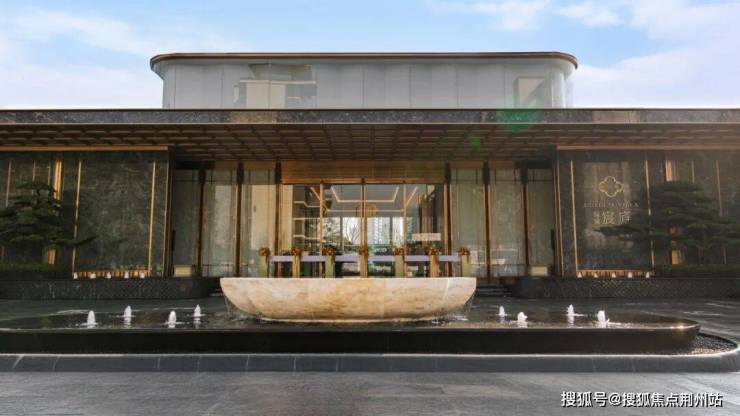 「笔墨门庭」处,宽约58米恢宏主入口,以酒店式落客空间迎宾,彰显归家的尊崇感。形似莲花的聚宝盆水景静卧其中,盆景罗汉松、黑松与蓝钻奢石景墙相映成趣,刚柔并济,寄托福泽绵长的美好寓意。