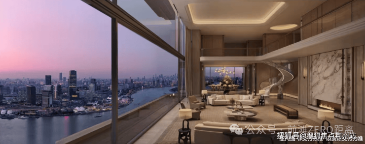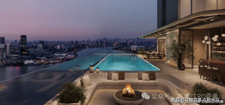 510㎡天际顶复拥有270°无界环幕视野,南向全落地采光大窗,西侧双露台分别连接客餐厅和会客厅,东侧露台更设计了悬浮露天泳池,直面黄浦江世界水岸。
