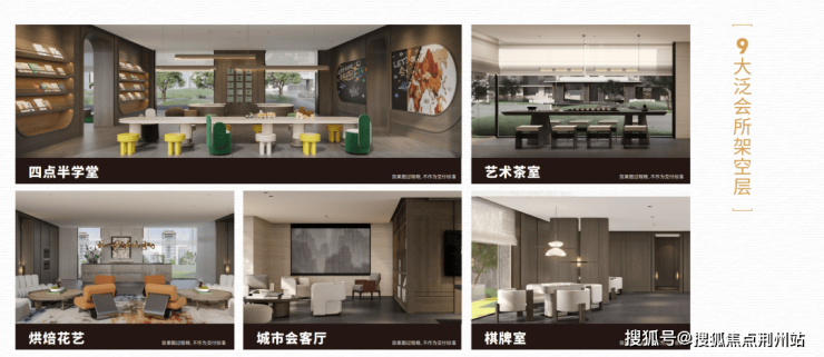 9大架空泛会所空间根据生活化场景定制,满足不同年龄段人群需求,打造全生命周期的休闲娱乐空间,功能包含艺术展览、亲子、花艺、棋牌、茶艺、会客、总裁办公等。