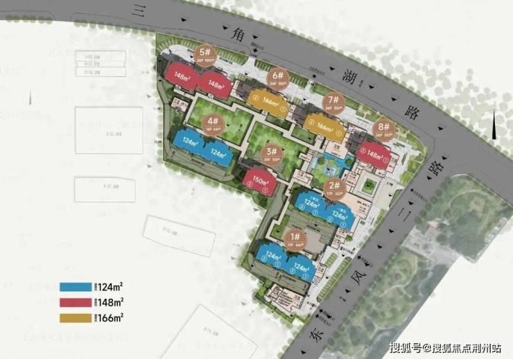整体项目规划总建面约11.8万方,计容建面约6.73万方,整体容积率约2.5,住宅约6.5万方,共包含约493套房源,户均建面约131平,定位偏改善。整个项目一共有8栋住宅,采用高低错落阵列式排布,包含3栋16-17层小高层、5栋25层高层