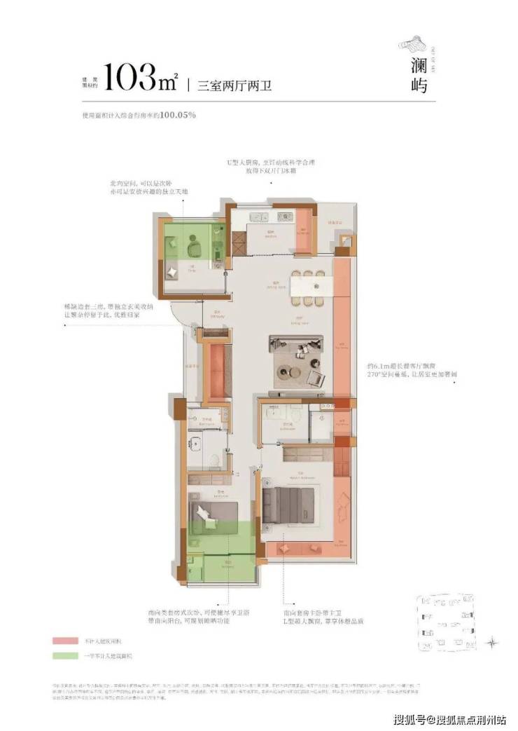 是小胖个人在全盘户型里,最为喜爱的三房边套设计,整体赠送的面积超过25方,空间利用率极高,客厅的飘窗超过6米,采光面巨大。