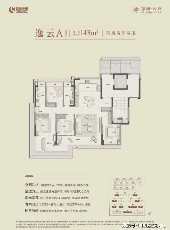 建筑面积约143㎡四房两卫户型,非常有看点: