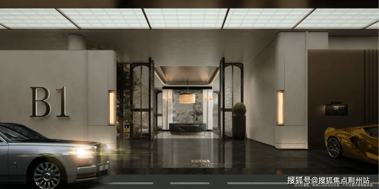入户的大堂有了,自然少不了地下车库,地下车库也将风格贯彻到底,借鉴半岛酒店奢华酒店吊顶格纹的设计,进一步提升归家礼序和尊贵感。