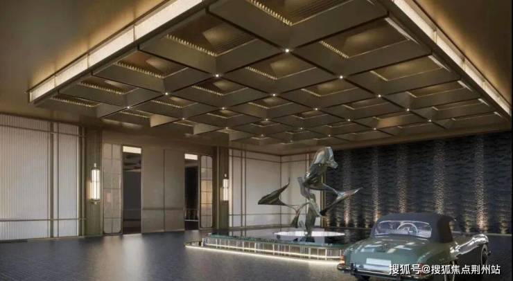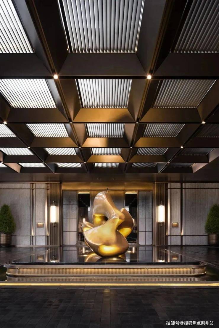 车马院以上海半岛酒店为灵感,设计上使用海鸥丽晶酒店同款接待门,彰显尊贵的大家门厅气质;打造社区归家玄关,下挂式星空顶、艺术雕塑、迎宾叠水范思哲黑背景墙交相辉映。
