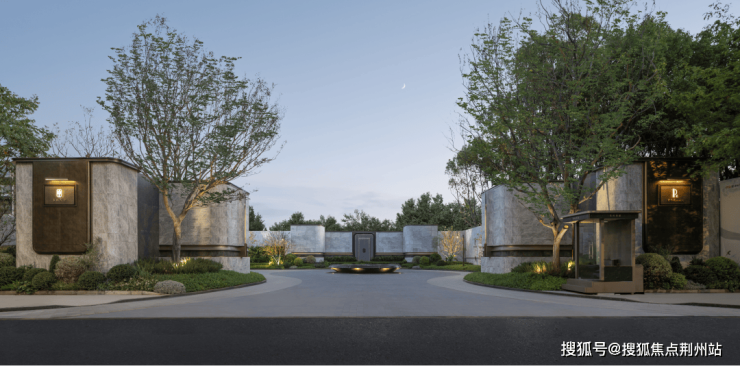 这是萃屿原墅的主入口,设计师用两侧高约5米的景墙代替了传统的门庭,就像大多数高级度假酒店做的那样。