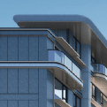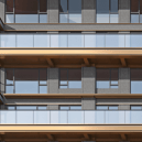它以现代海派风格为骨,从珠宝界的“劳斯莱斯” 布契拉提汲取灵感,将传世“金丝镶嵌” 技法凝于建筑立面:米白色仿石铝板、灰色铝板与咖色铝板交织,香槟色饰板点缀其间,再配上蓝灰色中空 LOW-E 玻璃,阳光洒下时,整栋建筑似有金玉流光。