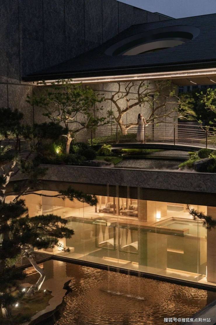 每一处都是宋韵风雅的穿越。比如“踏水归廊”,从宋代“曲水流觞” 的雅集中汲取灵感。比如约40米“和风游廊”,宋代标志性“黛色青瓦”定制了独特的美学标记,还有总高度达到了约10米的瀑布景墙!颇有大宋诗人祖无择笔下“绝巘千寻势,飞泉万叠痕”的气势......
