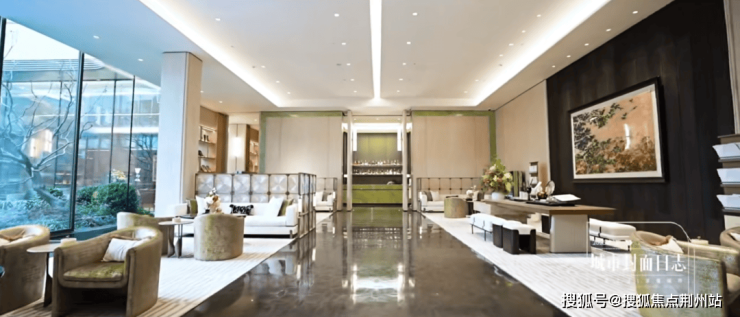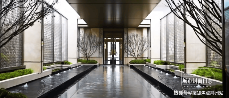 这条时空艺术长廊,是光影交织的林境,21米香槟金格栅长廊以2:1黄金尺度勾勒光影,巧妙框取下沉庭院的雾森景致,乌桕木与蓝翡翠岩水潭倒映天光,让归家成为诗意旅程。