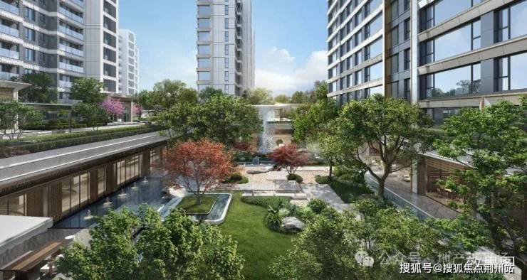 千山云境的园林设计,精准踩中这一需求:打造双下沉庭院,归家庭院以立体山水景观消解尘世烦扰,让业主归家即享松弛感;中庭鎏光水院则以潺潺水声为背景,伴业主寻回心灵的宁静。