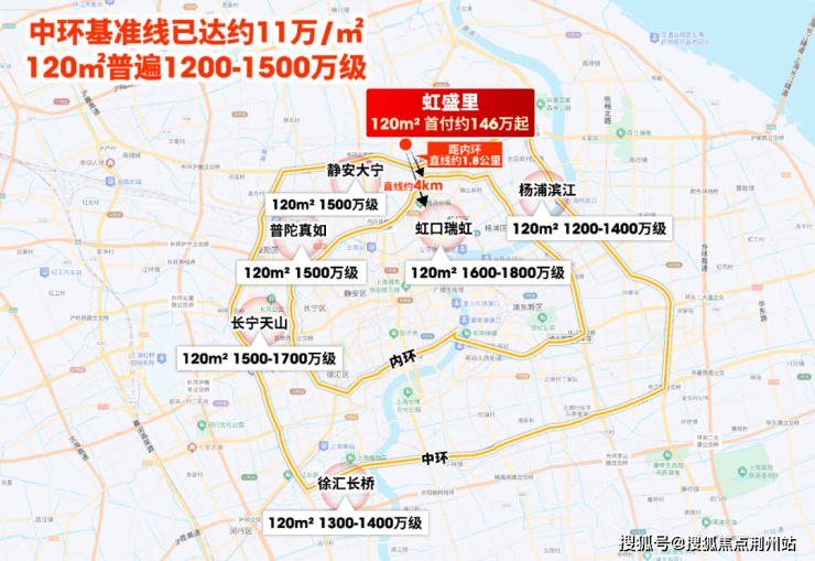 即便与同区域相比,优势同样突出——直线距离仅4公里的虹口瑞虹板块,120㎡房源总价已达1600-1800万级,虹盛里的差价接近一半,这样的性价比在市场中罕见,为资产安全筑牢基石。