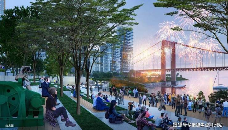 另一方面,在湾岸沿线规划了滨水公园联盟,传承土地的工业历史与文化脉络,用自然与艺术的方式打造了公园绿地,成为武汉滨江生活新标杆!