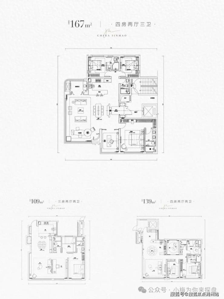 金茂·樾满晴川目前还在前期筹备中,户型面积是109,140,166三个面积段,为第四代住宅百分之百➕的得房率,层高3~3.1米。户型图如下