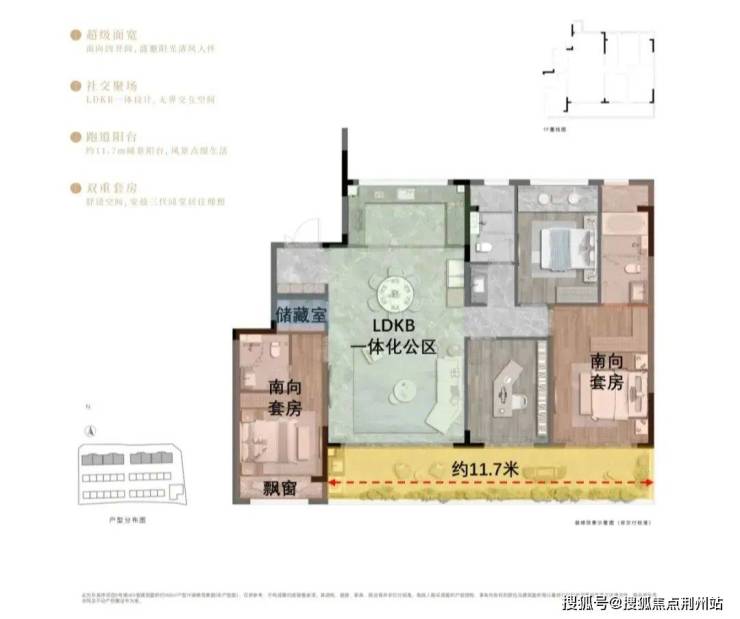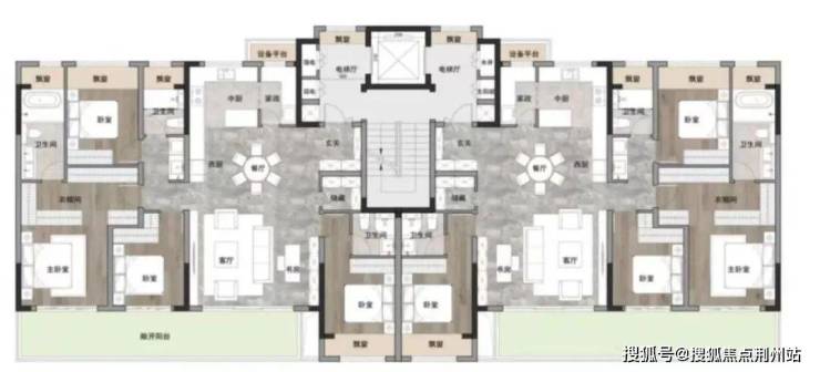 超宽三连大阳台,四开间布局,大横厅,双套房设计,电梯双开门