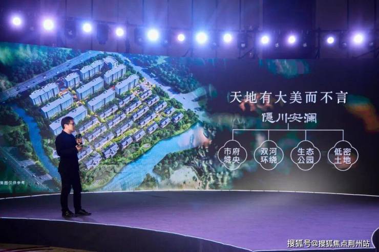 发布会现场,灯光大秀以“静水流深”为主题拉开帷幕,定调了项目隐逸与尊荣并蓄的美学内核。