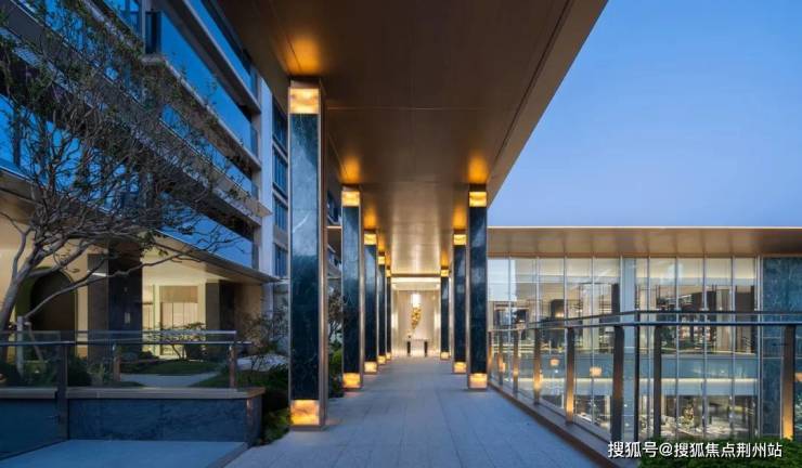 项目采用了Fold Shadow折线立面,独特光影镜幕立面,配合金属铝板线条细节、石材加玻璃的材质组合,营造出高雅、丰富的建筑肌理与动感。同时配合大尺度景窗设计,提升动态视觉审美,让建筑与周边自然景观、城市景观相互融合。