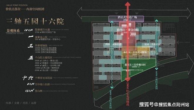 创造融入有自然感的交流空间与沉浸式的感官体验连接,打造富有仪式感的三轴五园观山景观以及十六个不同院景主题的环宅花园体系,独享山居的别院感受。