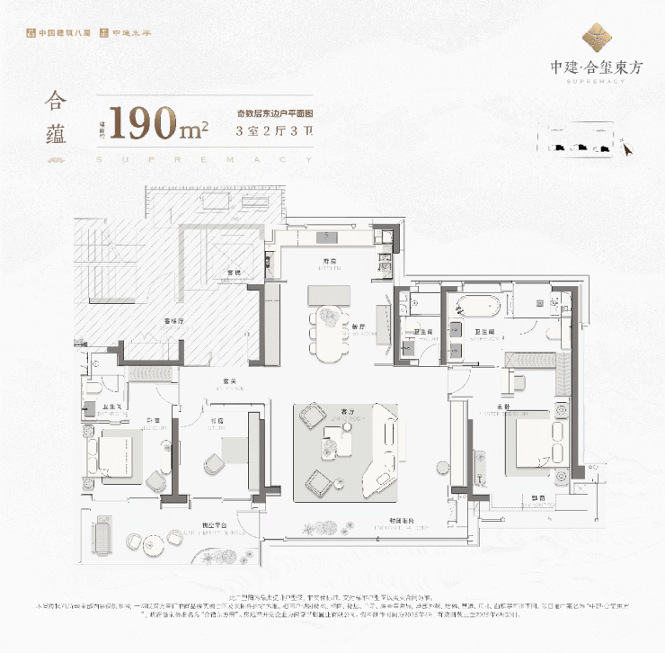 除了235㎡的寰幕大平层,中建·合玺东方190㎡五开间朝南户型同样受到了买房人的广泛关注。
