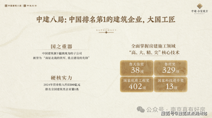 中建八局多年来参与南京众多地标的建设,包括大报恩寺、江苏园博园、南京南站、奥体中心、禄口机场、牛首山佛顶宫、金陵饭店、江苏大剧院等,虽然过去较少参与住宅开发,但这家开发商始终和南京城市发展紧密捆绑。