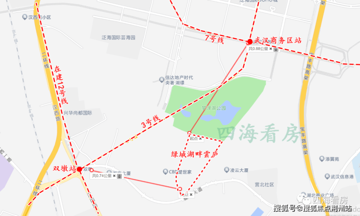 地铁:项目高层距离地铁7号线和3号线换乘站武汉商务区站直线距离约900米,别墅区距离地铁3号线和在建12号线换乘站双墩站直线距离约750米。周边地铁网络很丰富,步行不算太近。